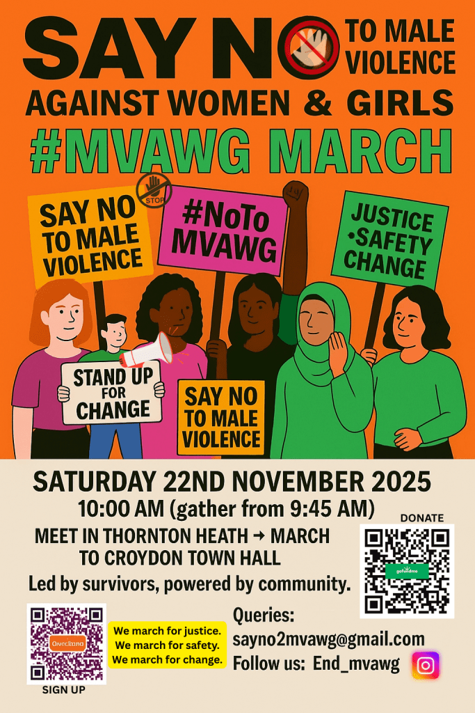 On Saturday 22 November 2025, I will be standing in solidarity with the community to lead a major survivors-led march saying no to male violence against women and girls #MVAWG: walking from Thornton Heath to Croydon Town Hall — demanding justice, safety and sustainable change.